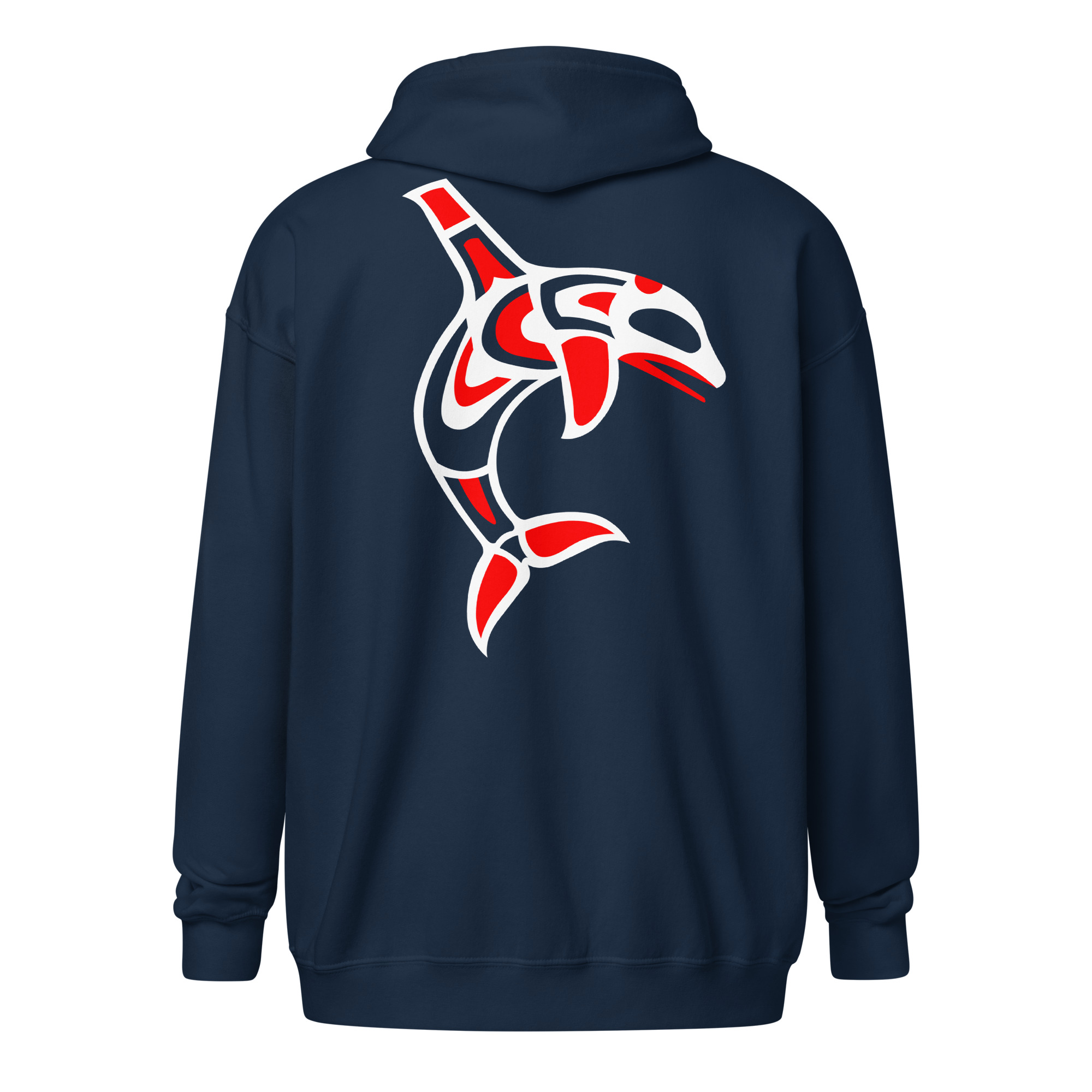 Designed for both style and warmth, the Orca Hoodie features a sleek, modern design inspired by Indigenous artistry. The striking orca motif represents strength, resilience, and unity – values that resonate deeply with our mission. The hoodie is made from premium materials to ensure durability and comfort, making it a wardrobe staple for all seasons.